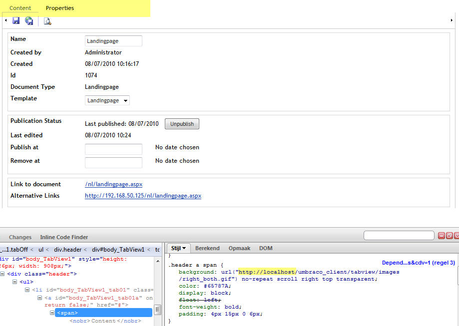 I'm missing the images for the tabs in the backend of umbraco, on a nearly clean install. Umbraco is trying to load them from "localhost" instead of from the server, which results in missing images :/